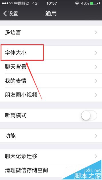 3、进入“通用”页面后,在此页面有一个“字体大小”按键,我们点击此按键。