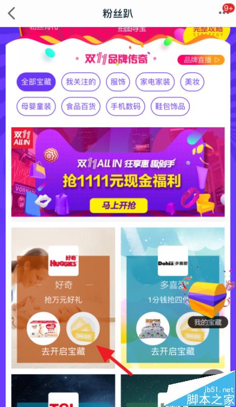 2、接着选择【全部宝藏】,下方有很多品牌,任选一个进入