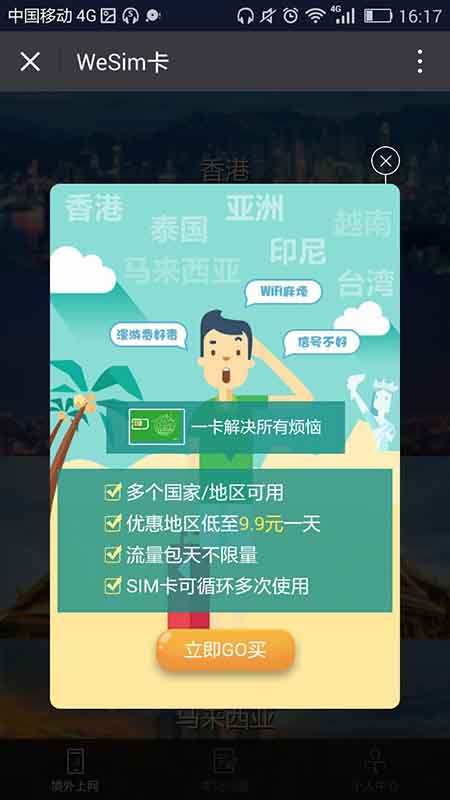 微信app怎么购买WeSim卡?刚刚我们介绍了微信新增了一个WeSim卡全通上网卡,如果你想取国外过着港台玩,都可以购买这个卡,可以打电话也可以上网,很方便,关键是便宜,下面我们就来看看WeSim卡的购买方法。