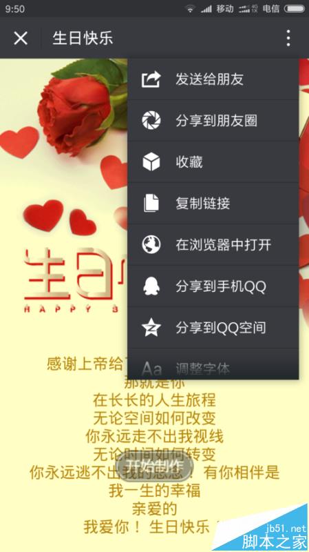 目前,亲人之间、朋友之间、同事之间、同学之间,用微信传递消息是很普通的事情,我们中老年人基本上也都学会了微信的诸多功能,但做生日贺卡还是第一次做,觉得这样祝福远方朋友生日快乐是很好的一种方式,既能表达对朋友或亲人的祝福,还能随时随刻让朋友感觉到温馨和体贴。下面给大家演示一下制作过程。希望能帮到你。