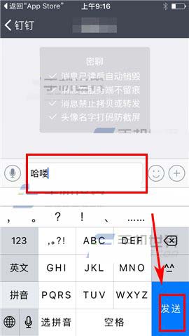 2)选择一个想要发起密聊的联系人,在输入密聊消息后点击【发送】即可。(如下图)