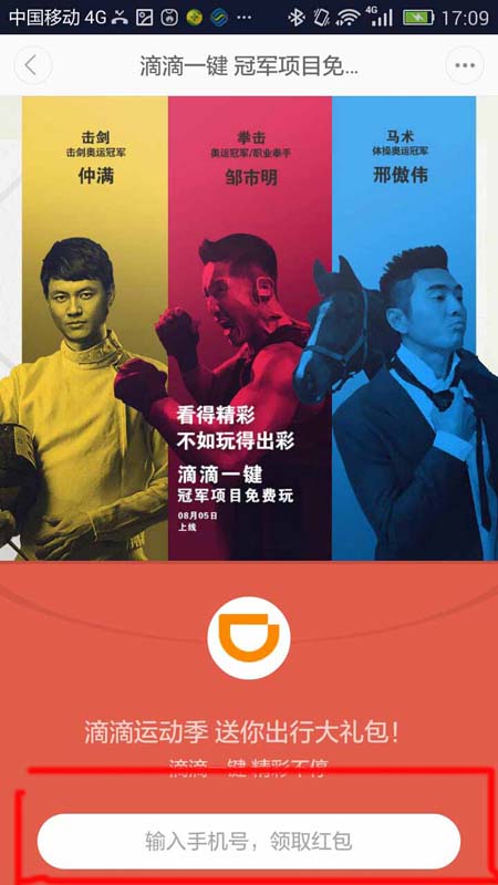 以上就是滴滴出行app领取里约奥运会红包礼包的详细教程,不会的朋友可以留言,我们会继续帮您解答,喜欢的朋友转载请注明文章来源脚本之家,谢谢支持。