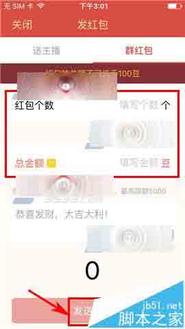 3)点击编辑框输入红包个数以及金额,最后点击【发送红包】即可。(如下图)