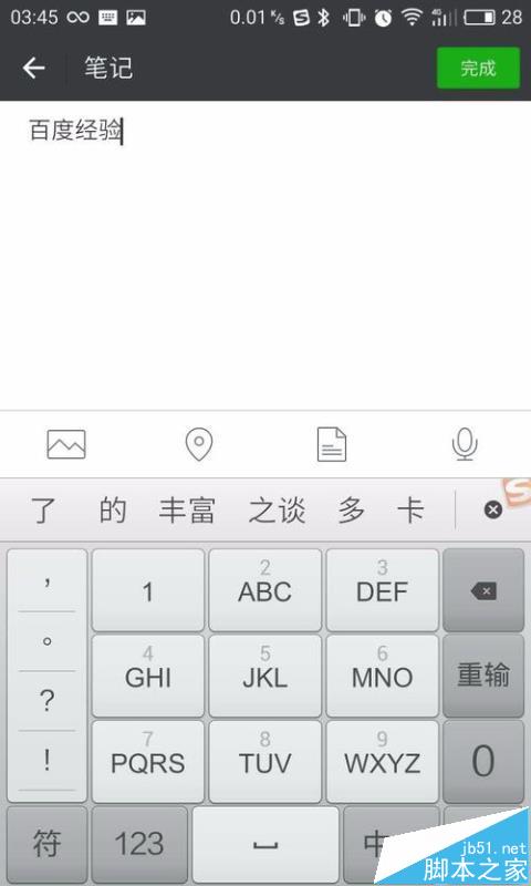 2、编辑笔记,不仅可以写文字,还能添加地图、图片、录音,等