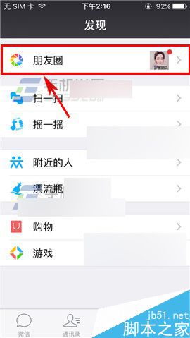 1)打开微信,点击下方的【发现】,接着点击【朋友圈】;(如下图)