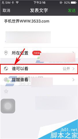 2)点击长按右上角的【按钮】,接着点击编辑框输入朋友圈内容,接着点击【谁可以看】;(如下图)