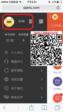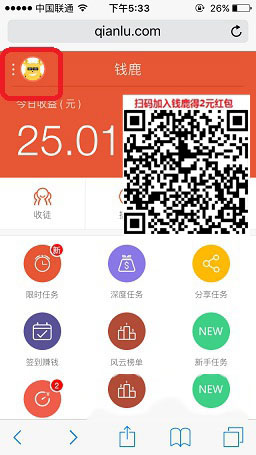 3.在新页面再次点击个人头像,新用户扫描图中二维码即可加入钱鹿,如图: