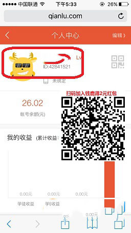 2.再点击个人ID头像,新用户扫描图中二维码即可加入钱鹿,如图: