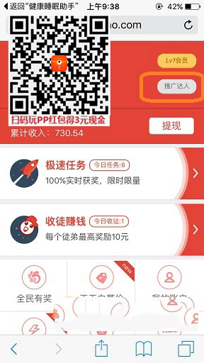满足以上条件即可申请成为PP红包推广达人,具体流程如下: