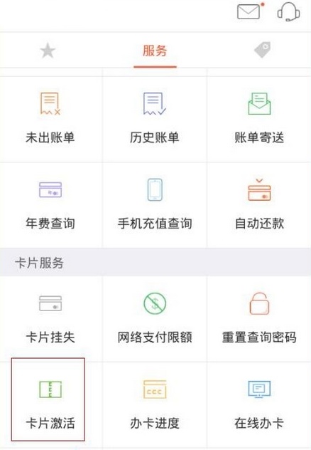 1、打开平安信用卡APP,进入到服务页面,在服务页面中点击卡片激活;