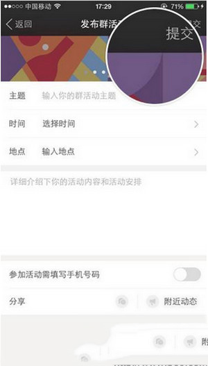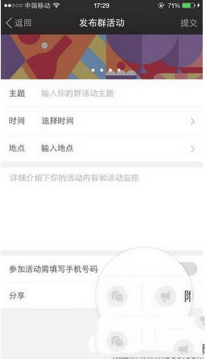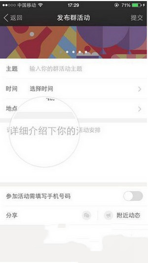 4、依次填入主题、时间、地点及详细介绍