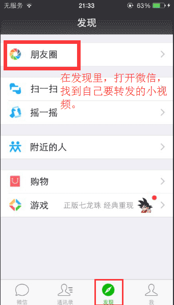 目前朋友圈内的小视频只有分享、收藏功能,没有随手转发到自己的朋友圈的功能,下面经过本人实测,只需简单几步即可将微信视频转发到自己的朋友圈里.。苹果安卓都可以按下面的操作!