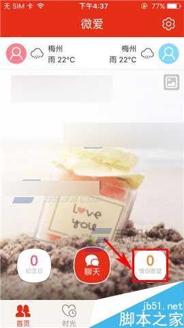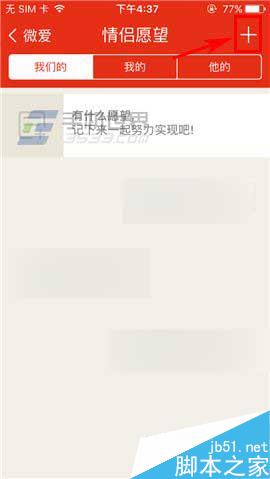 1)打开微爱,点击【情侣愿望】,接着点击右上角的【+】;(如下图)