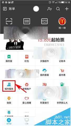1)打开支付宝,点击【城市服务】,然后点击【APM购票】;(如下图)