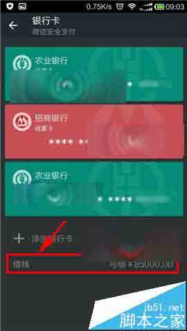 2)点击右下方的【银行卡】,然后点击最下方的【借钱】;(如下图)