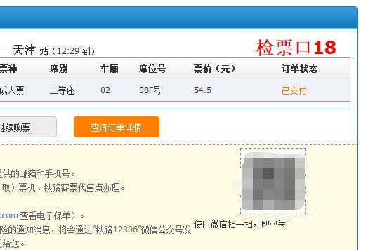 1、通过微信扫描12306网站注册成功、支付成功、登录成功任一页面上的二维码,关注并绑定“铁路12306”微信公众号。