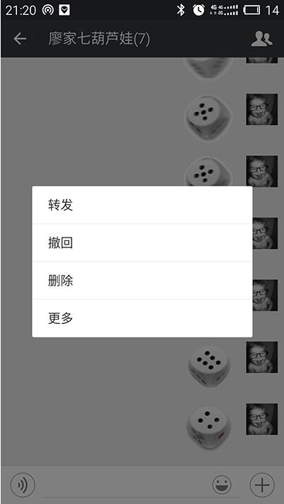 其实,识破微信玩骰子游戏有没有作弊的秘诀就在于,准确分辨对方发的是否动态表情图,还是真的微信子游戏图。下面,通过两张图片的对比,你就会发现,如果对方发送的是微信骰子1到6点动态表情图,你长按该图片,会出现“转发”的字样,而如果是使用微信骰子游戏的随机图片,就不会出现!(如图)