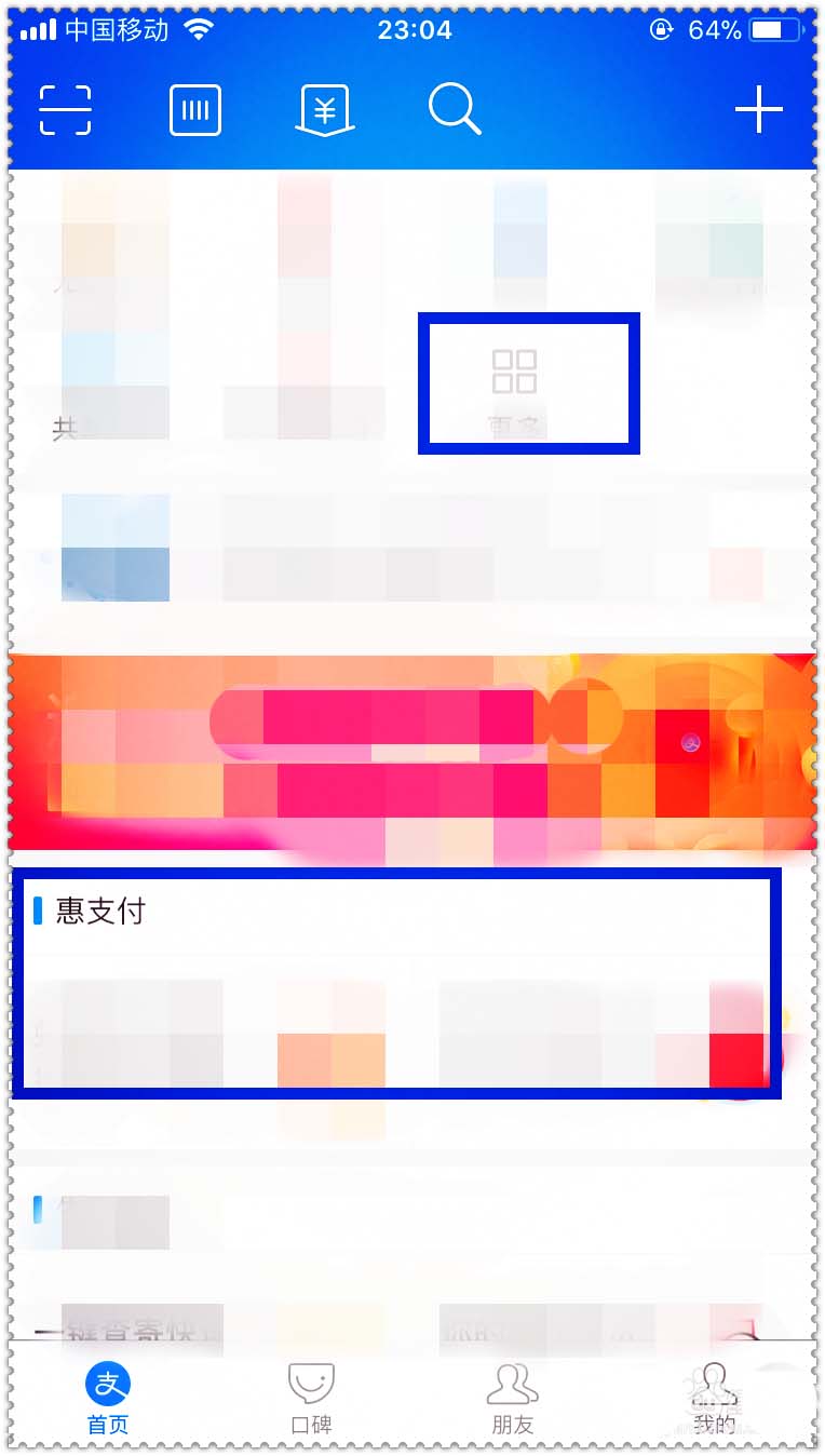 2、进入支付宝界面,如果平时经常使用它支付,可以在惠支付点进去,找到健康果赠送界面,然后点击领取进入;也可以直接从程序更多--保险服务中进入。