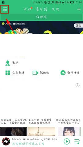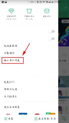 1)先打开QQ音乐点击左上角的【三】进入功能界面,接着再点击【微云音乐网盘】功能。(如下图)
