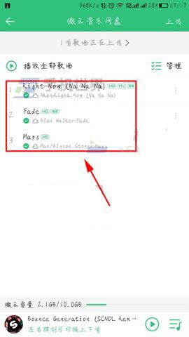 3)最后点击返回我们就可以看到刚刚的【歌曲】都已经上传到网盘中了。(如下图)