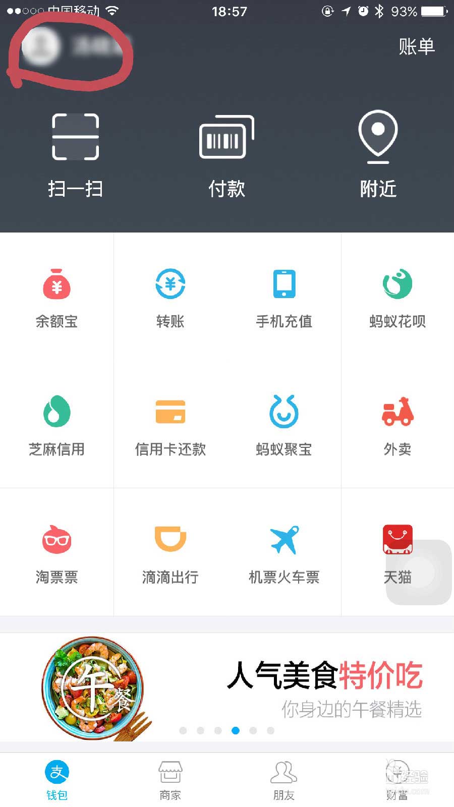 1、进入手机支付宝,从红笔圈住的地方登陆。