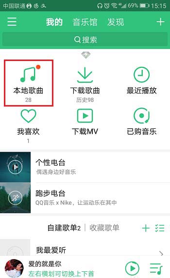 3、进去本地歌曲界面之后,找到要举报恶意评论的歌曲,点击进去,如下图所示: