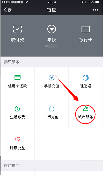 3、点击”城市服务“