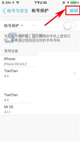 3)然后点击右上角处的【编辑】,随后再选择所要删除的设备信息,点击其前面的【—】图标;(如下图)