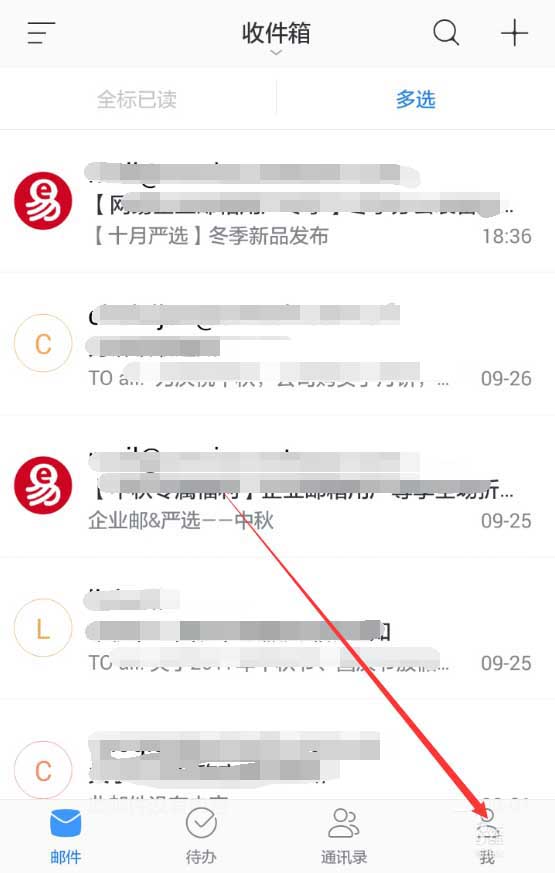 2、成功进入网易邮箱大师界面后,点击下面的【我】选项卡,如下图所示。