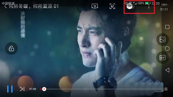 2、进去视频播放界面之后,可以看到手机竖屏是没有弹幕开启关闭按钮的,如下图所示: