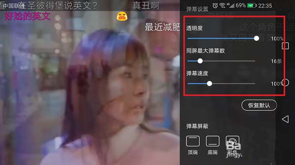 6、点击之后可以最大弹幕数,透明度,弹幕速度等,如下图所示: