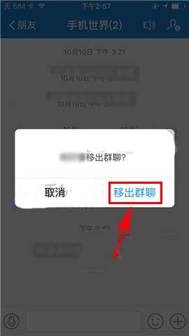 2)然后再点击群聊界面中的【撤销】按钮,最后再点击提示中的【移出群聊】即可。(如下图)