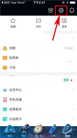 1)打开美团APP,首先点击首页右下方的【我的】,随后点击屏幕右上角的【设置】图标;(如下图)