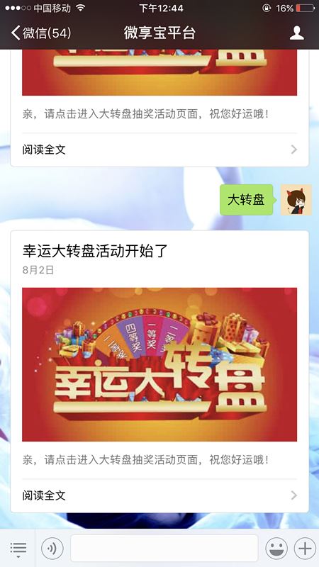 第五步:参与活动,发送活动的关键词到公众号里,就会弹出活动的页面,点进去参与就可以的。需要分享的话,点右上角分享按钮就可以的。