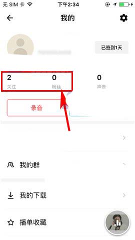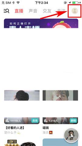 1)点开荔枝FM,首先点击首页右上角的用户头像,然后选择“关注”或“粉丝”列表;(如下图)