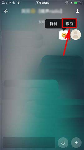 3)在发送完某错误信息后,【长按】该条消息,最后再点击【撤回】操作项就可以啦。当然,我们亦可进入图二中的“消息”栏,选择相关的会话框操作。(如下图)