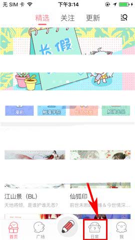 1)点开触漫APP,首先进入首页下方的【日常】页面,随后点击其中的【管理】按钮;(如下图)