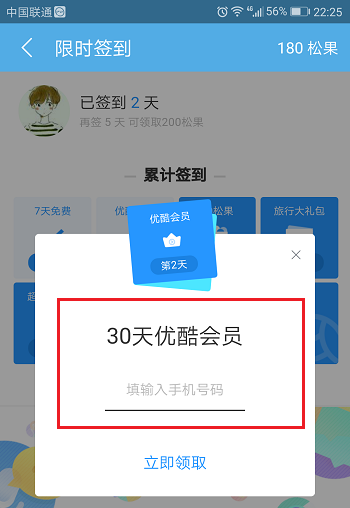 5、点击之后,会弹出框输入手机号领取,点击立即领取,如下图所示: