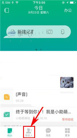 1)点开盯盯APP,首先点击首页下方的【联系人】,接着选择相关的企业;(如下图)