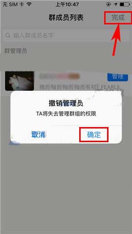 4)接着点击【撤销管理员】操作项,最后再在点击提示中的【确定】后点击界面右上角处的【完成】即可。(如下图)