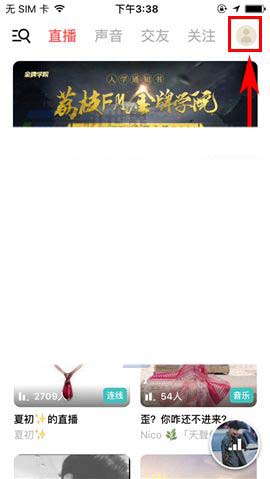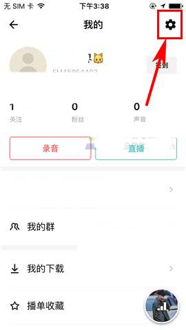 1)点开荔枝FM,首先点击首页中右上方的【用户】图标,接着再点击【设置】图标;(如下图)