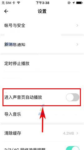 2)最后再关闭【进入声音页自动播放】功能便可。(如下图)