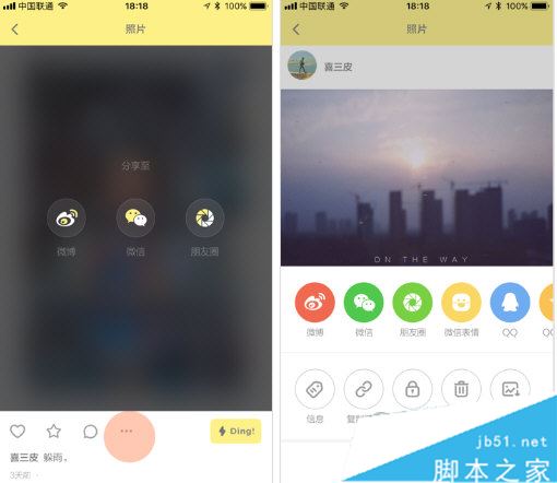 2) 点击照片右下角的「...」选择分享平台,这种分享方式不能添加分享边框。