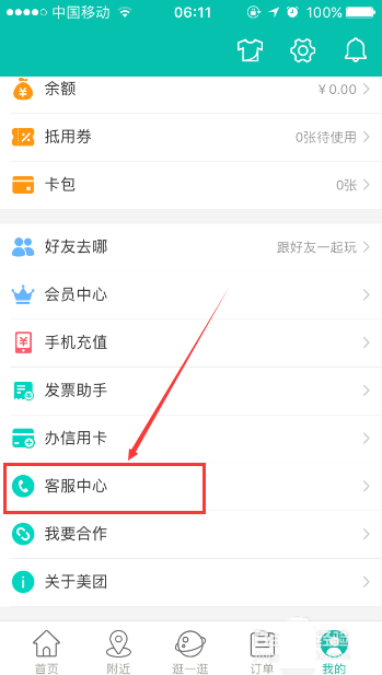 1、如果用户想要投诉美团外卖,首先打开手机美团APP软件并登录个人的美团账号,接着进入到“我的”页面,之后点击页面中的“客服中心”按键。