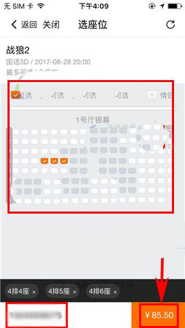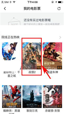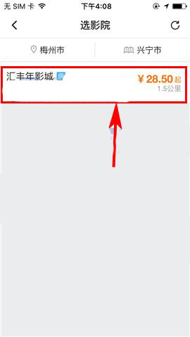 2)随后选择相关影片,接着选择地区及相应的影院;(如下图)