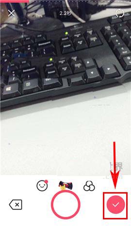 2)接着在确认录制结束时点击屏幕中的【对勾】图标,然后再点击箭头所指的按钮;(如下图)