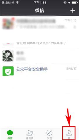 1)打开微信APP,首先点击首页右下角处的【我】,然后点击界面上方的用户头像;(如下图)