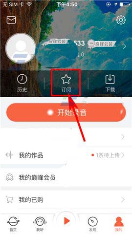 1)点开喜马拉雅FM,首先点击首页右下角处的【我的】,然后进入【订阅】;(如下图)