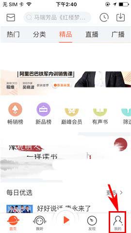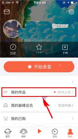 1)点开喜马拉雅FM,首先点击首页右下角处的【我的】,然后进入【我的作品】;(如下图)
