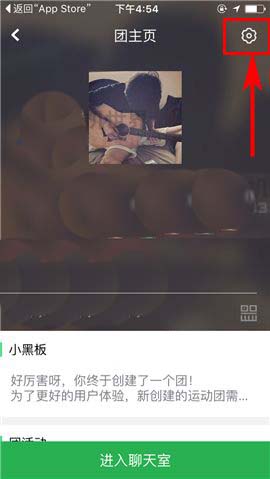 2)接着选择自己所创建的相关团,随后再点击团主页右上角处的【设置】图标;(如下图)